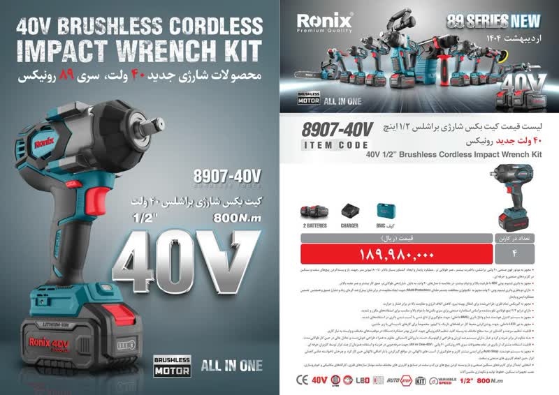 کیت بکس شارژی براشلس رونیکس 1/2 اینچ مدل 8907-40V